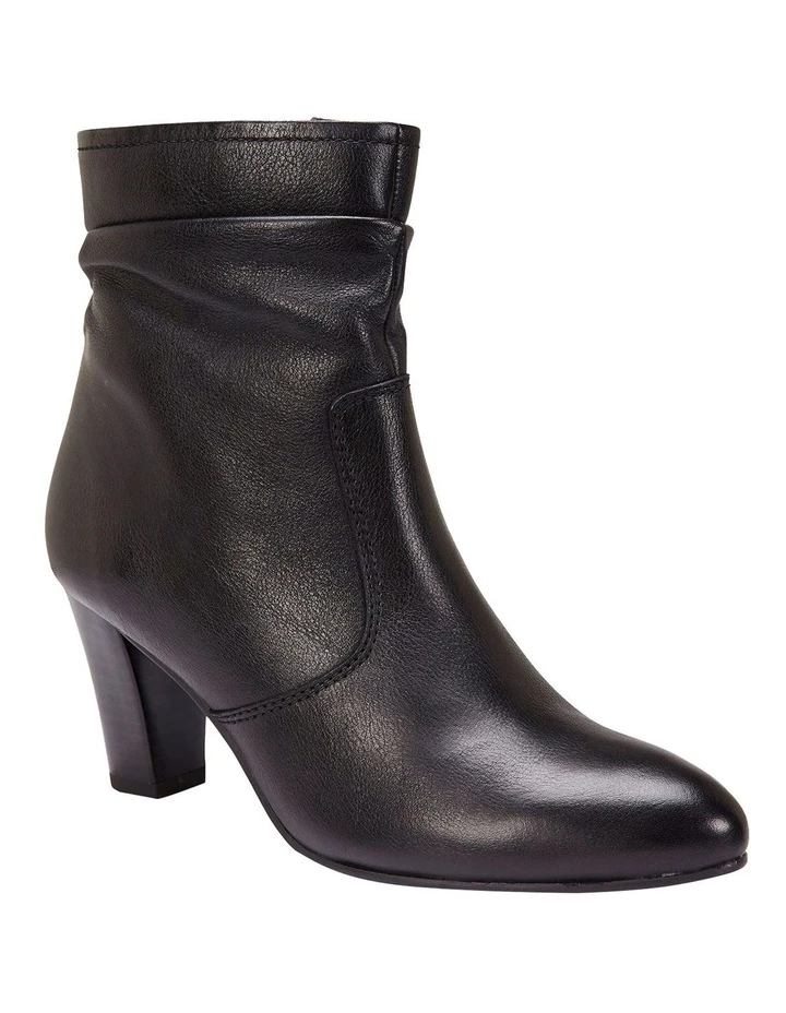 Elegant and versatile, PIPPA is a winter essential. Featuring a comfortable block heel and ruche detailing this style can take you from day adventures to dinner dates. Approx. 7cm heel height Leather upper Synthetic lining Synthetic sole Standard fit (B-fit)