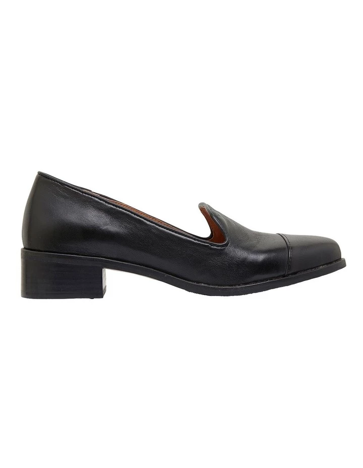 SABLE features a contrasting toe cap, soft underfoot padding and a low comfortable block heel. Create a contemporary look with tailored pants and a crisp white blouse to compliment the minimalist silhouette of this loafer.