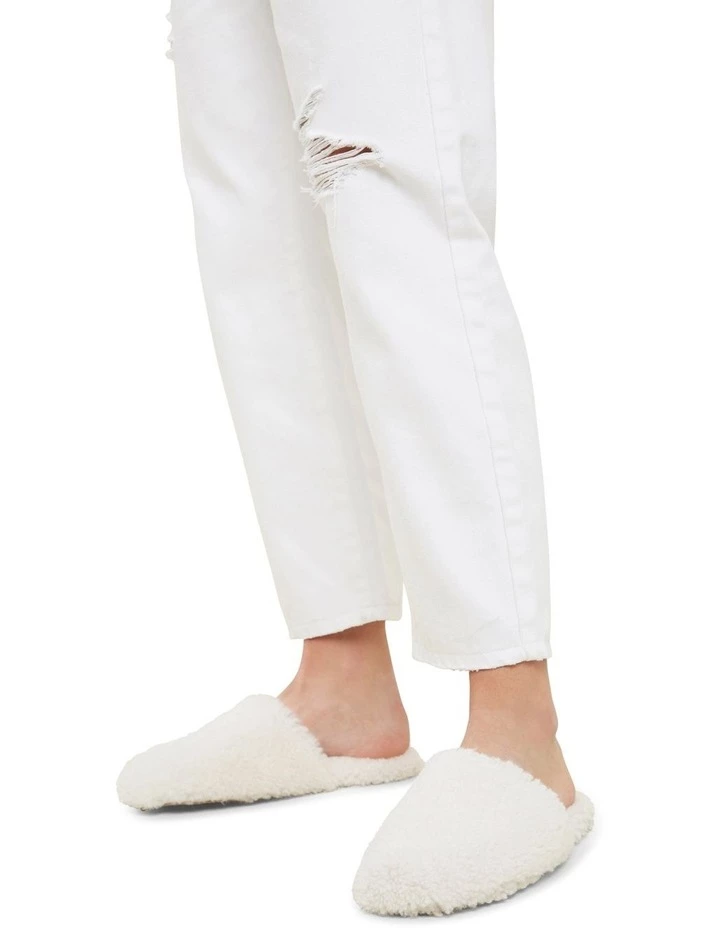 Fully lined in a soft shearling material, these flat slippers feature a round, closed toe and fluffy sole. Perfect for cold days and lounging around the house, the soft shoes are a winter essential.