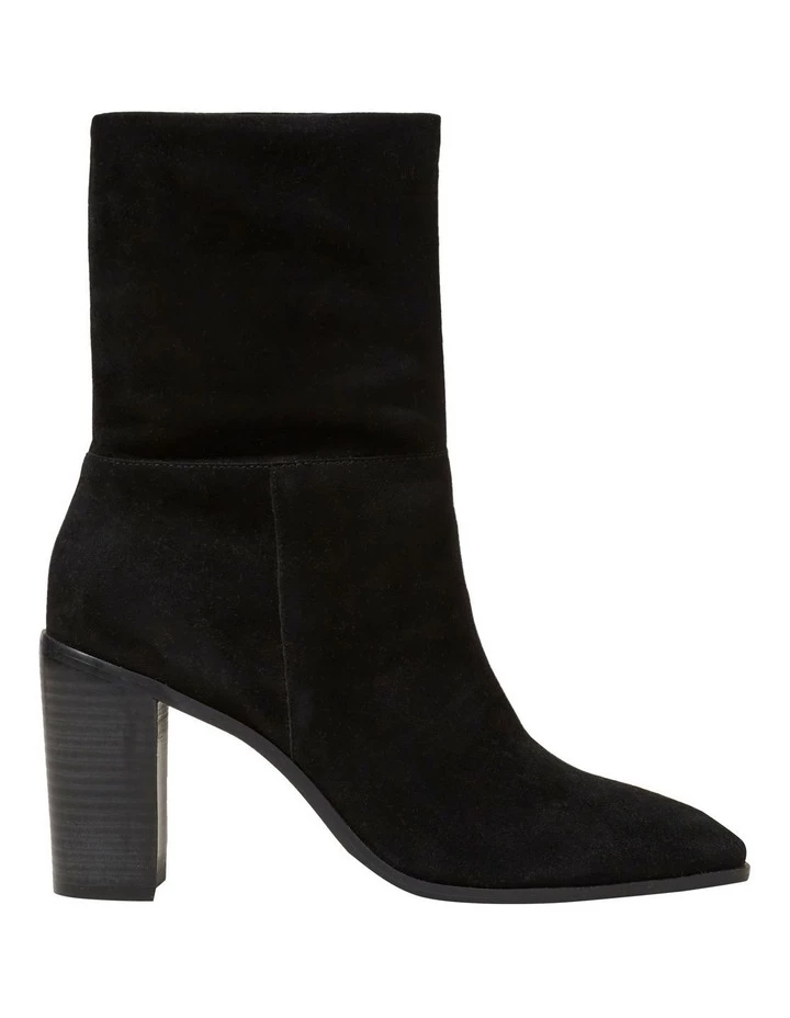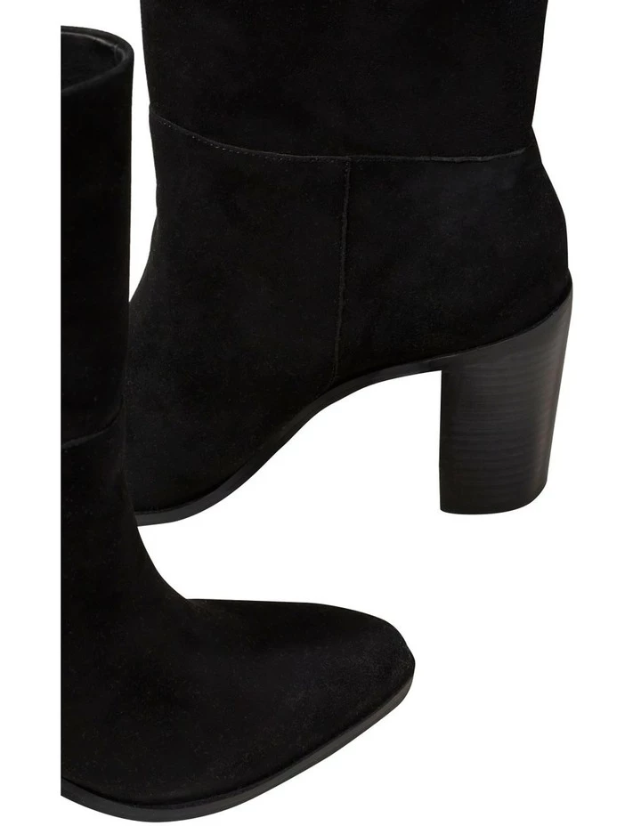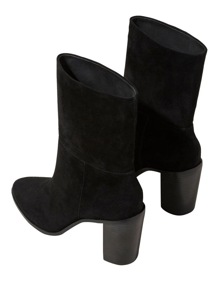 This soft leather boot is a winter staple, with an elegant 9cm heel and slightly rounded toe. The premium leather features seam details and extends slightly above the ankle for a flattering and comfortable fit.