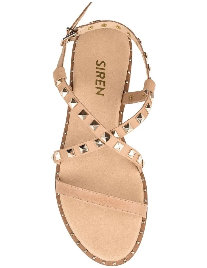 The perfect sandal to dress up any outfit, featuring metal stud hardware, studded rand detail, cross over vamp and padded insole for all day comfort.