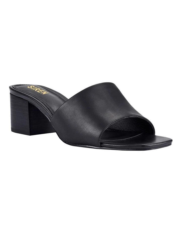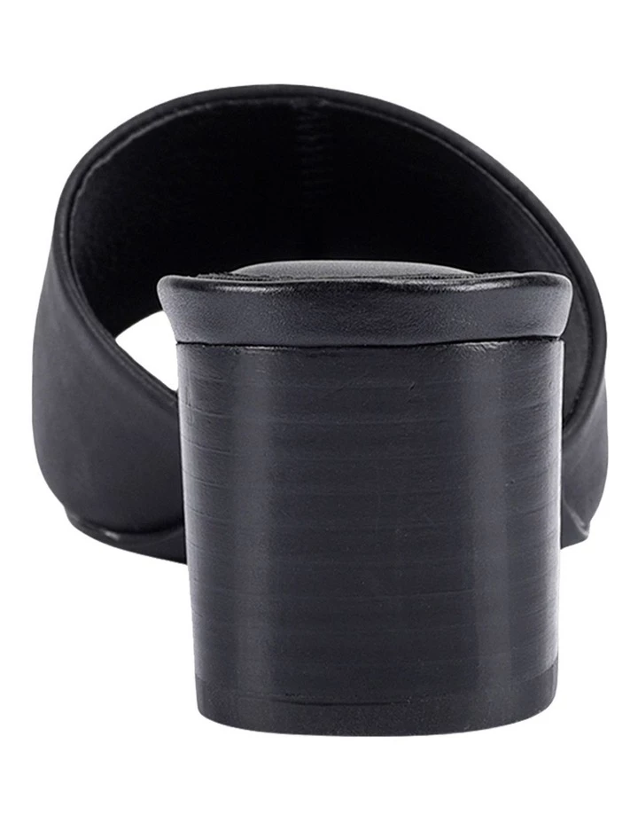 Versatile and comfortable, making the Nobu mule a perfect go-to style this season. Open toe with soft leather thick vamp strap, and low stacked block heel. Style with anything this season!