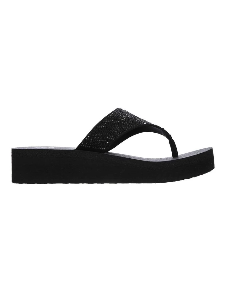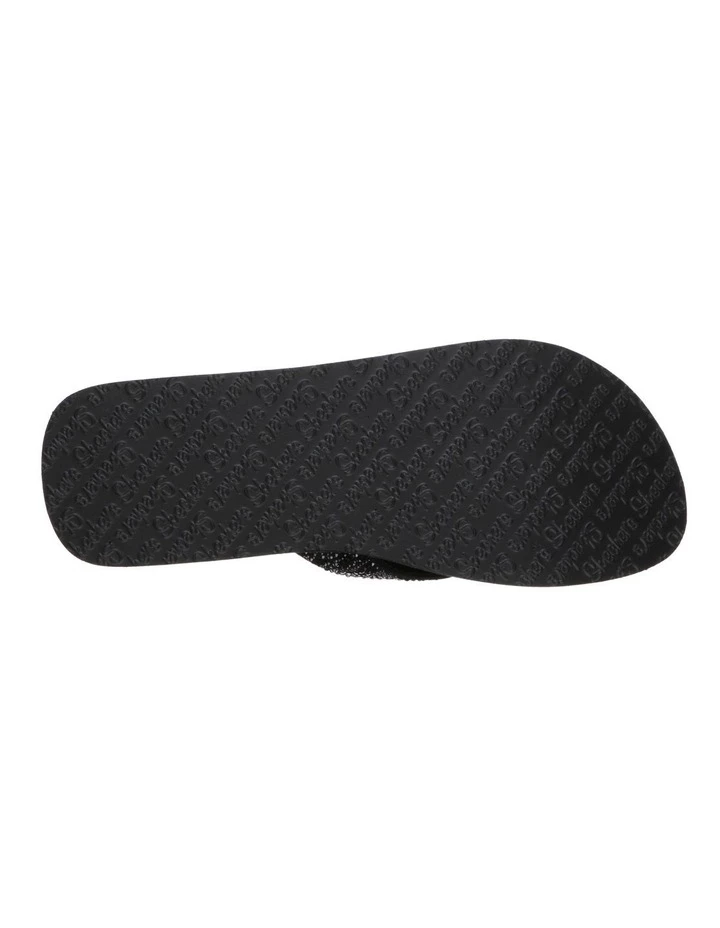 Make sure to sparkle in the sunshine with added comfort in the SKECHERS Cali Vinyasa – Stone Candy sandal. Smooth synthetic upper with sparkling mini rhinestone detail in a low wedge heeled flip flop casual thong sandal. YOGA FOAM comfort footbed.