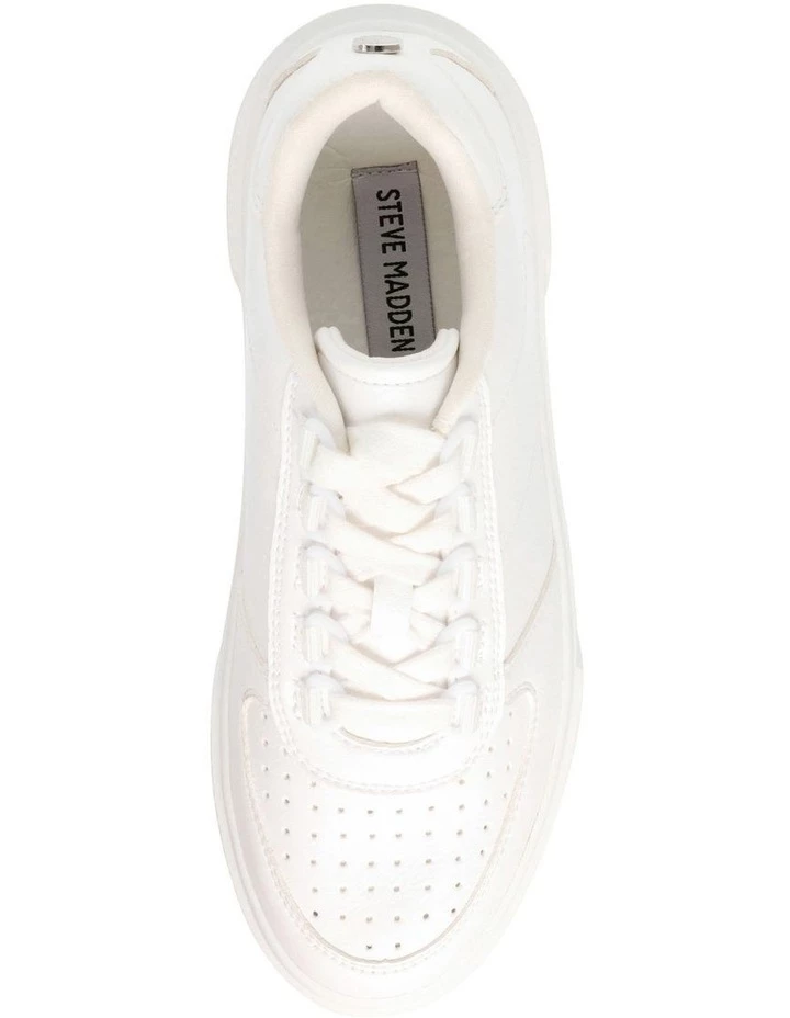A classic white sneaker with and SM twist! The chunky and slightly platform sole adds edge to the simple chic lines of this sneaker.