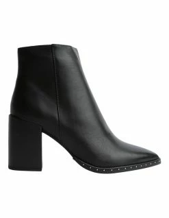 The Tony Bianco Bailey effortlessly wearable boot in black leather is designed with a sharp pointed toe, covered block heel and small silver stud detailing to add a bit of edge.