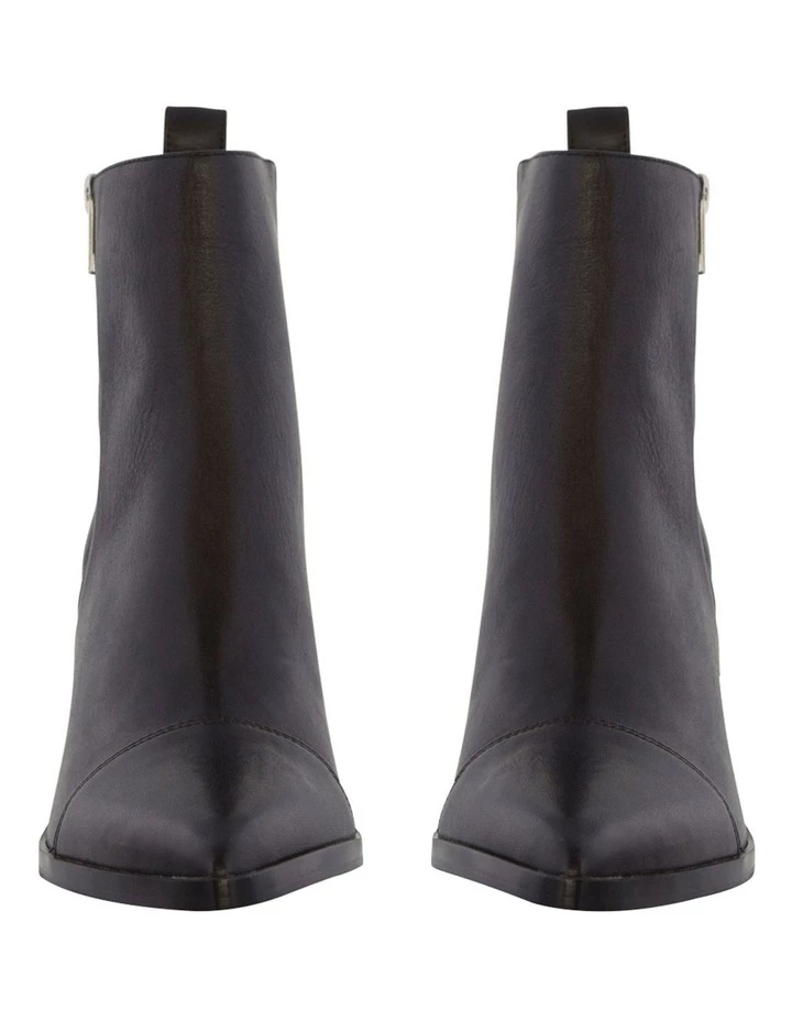 Take your wardrobe to the next level with Tony Bianco’s BELLE, a classic genuine leather ankle boot featuring gold zipper detailing, covered 8.5cm block heel and pointed toe. A timeless silhouette and wardrobe staple.