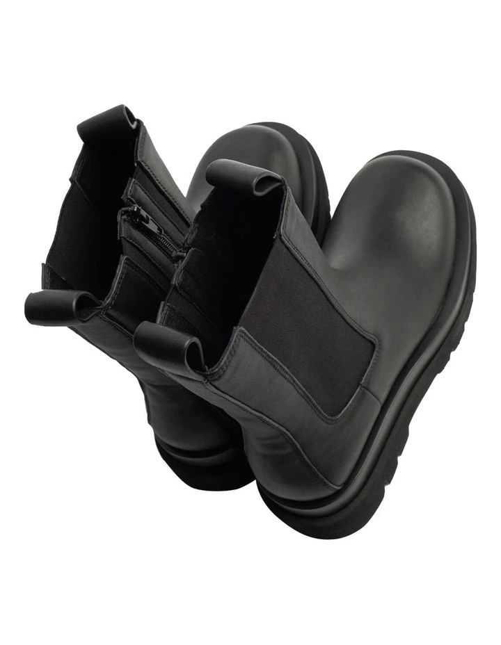 The boot of all boots is here. Meet Boxer, she’s our newest combat ankle boot with an edge. Designed with a rounded toe, an exposed chunky sole, side gussets with an inner zip to the ankle and twin pull tabs at the top. Finished with our all new leather upper and lining, alongside a cushioned foot-bed, this is a style not to be missed.-Material: ALL NEW Leather Upper & Lining -Sole: Man-Made -Fit: Runs large, we recommend purchasing a half size down -Toe-shape: Rounded-Features:Side gussets, inner ankle zip -Leg Height: 18cm-Heel: 6cm
