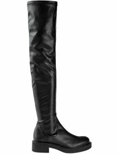 Slip into style with our Cascade long boots. Designed with a chic military vibe, a chunky flat sole, a rounded toe-shape and a fitted body. As a thigh-high style, pair with your fav mini-dress for the ultimate go-to. Inner zip to the ankle to easily slip on and go.