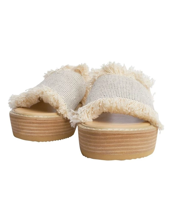 Slip into elevated comfort with the Ebony sandals. Showcasing a textured white and black cotton fringed upper with an open rounded toe and a platform sole.