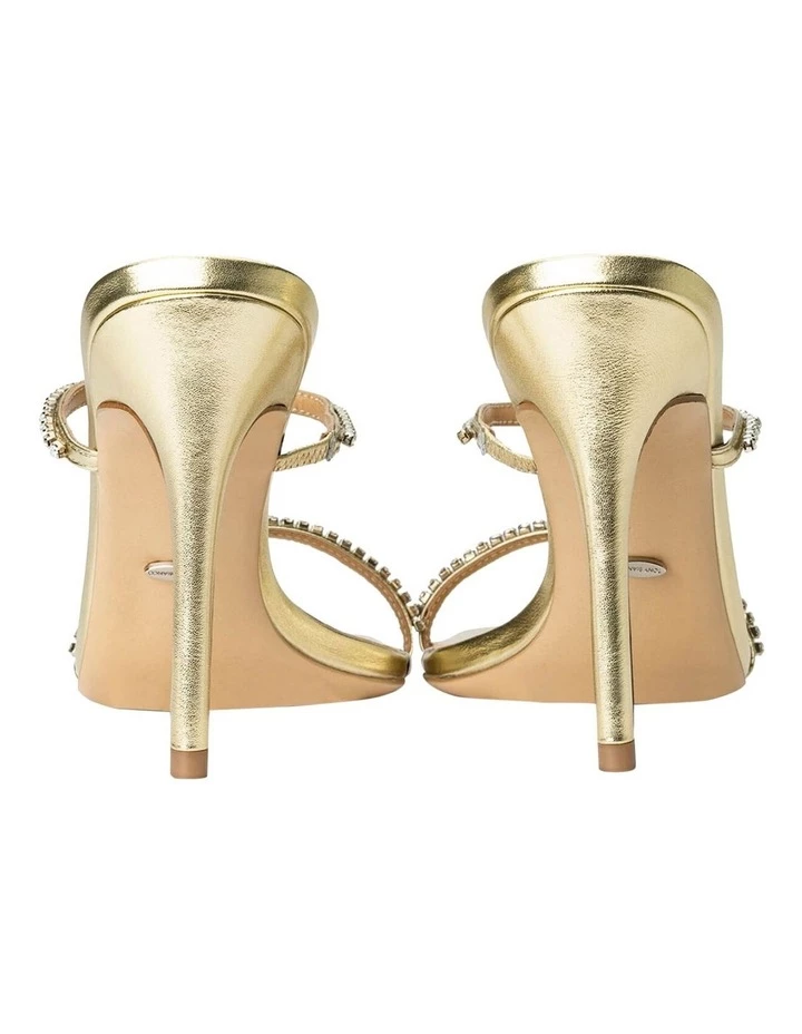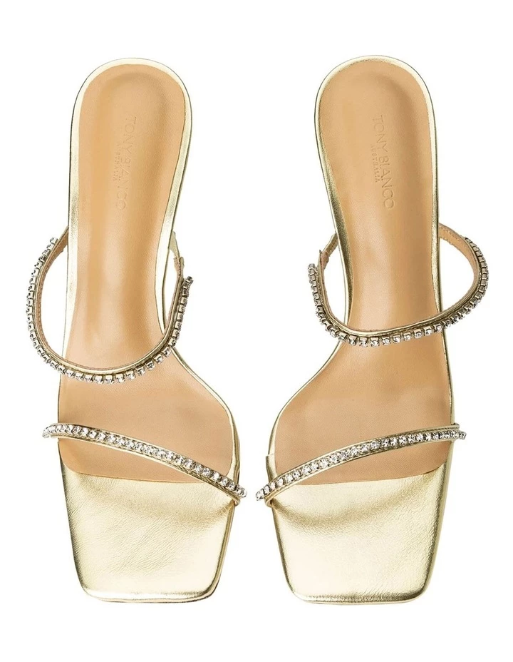 For the bling in you! Introducing the Fletcher heels. With a glistening crystal encrusted upper, squared-toe and sleek mule design with a metallic finish, let these be the treasure at the end of your rainbow.