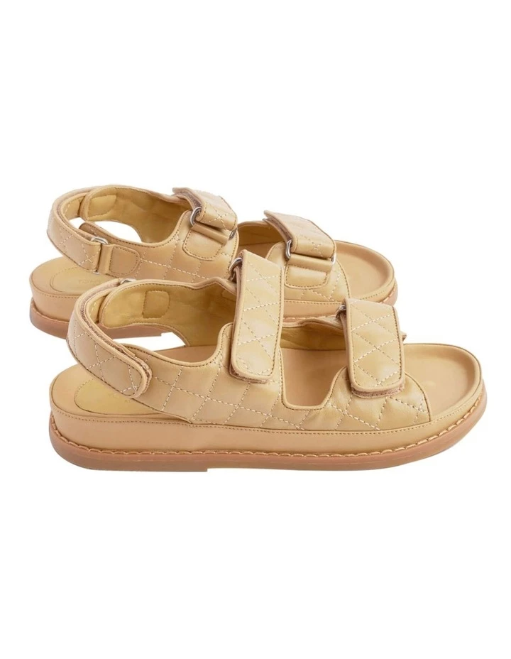 Meet our latest down-time must have, the Hiranni flat sandals. Constructed with a cushioned foot-bed and thick cross-foot velcro straps, the Hiranni features adjustable straps and quilted detailing, alongside an exposed sole, leather upper and all new leather lining. The perfect off-duty all-rounder that you won’t want to take off. -Material: Leather Upper & NEW Leather Lining -Sole: Man-Made -Fit: True to size -Toe-shape: Rounded -Features: Adjustable velcro straps, silver hardware -Heel: 3.5cm sole
