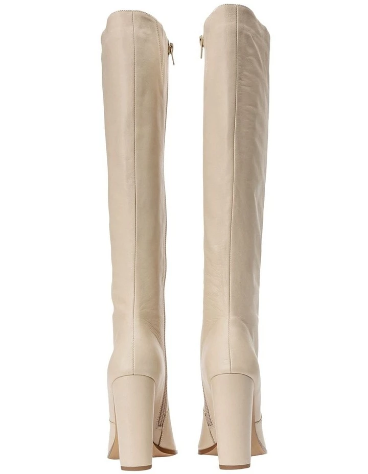 Warm up your wardrobe with these delicious new tones of the ever classic Lucille knee-high boot. With a chic leather upper and elegant pointed toe, the Vanilla leather makes these the ultimate tran-seasonal boot, ready for every occasion.