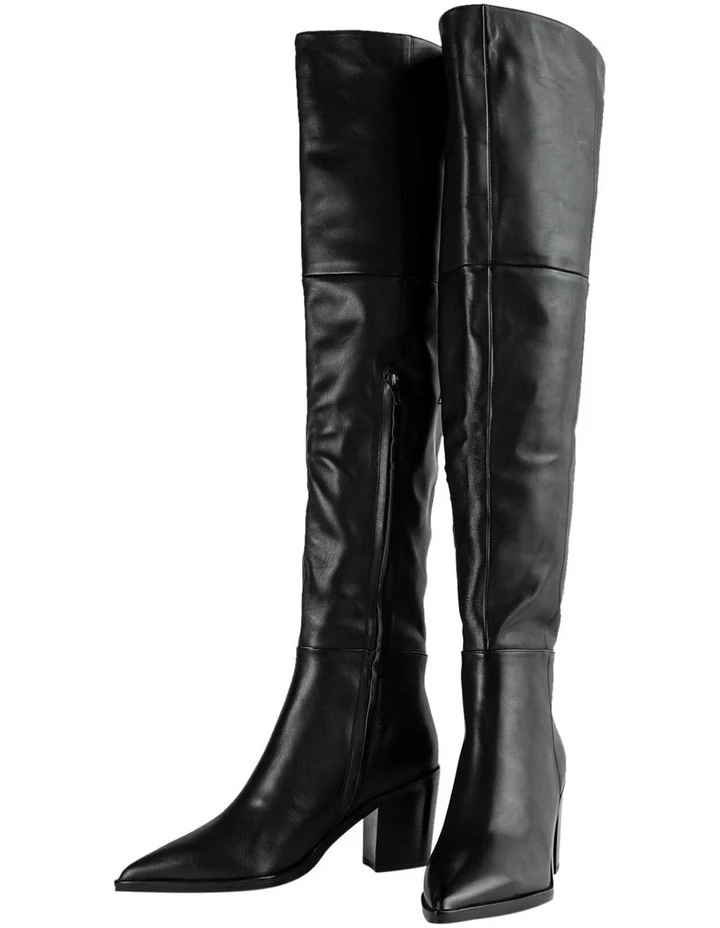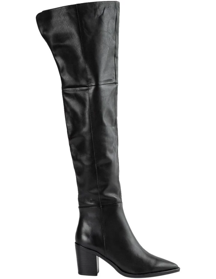 Showcasing a smooth black leather, the Stefani Boot from Tony Bianco is a classic style for seasons to come. Made from a quality leather, this design features a pointed toe, a contrasting exposed sole and an inner zip.