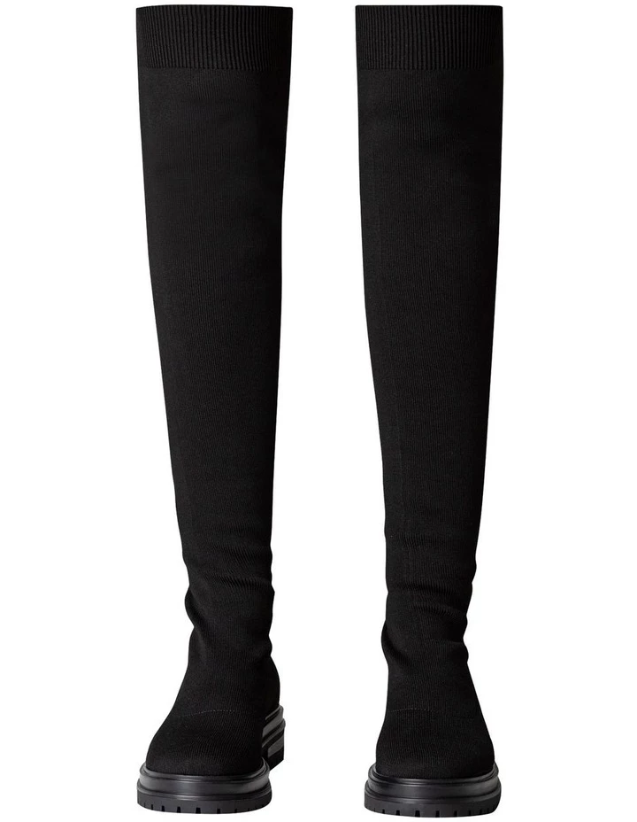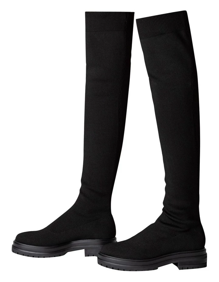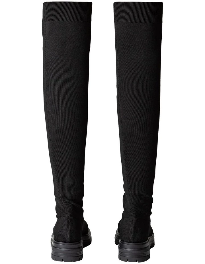 Cool by name and by nature, introducing <winter the over-the-knee sock boot you need this season. With a chunky platform lug sole, stretch sock upper and sleek silhouette, this design is the modern take on the classic black boot.</winter