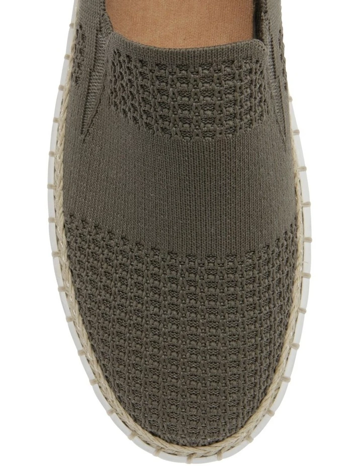 The Queen sneaker features a knitted upper with a sock like fit. Slip on style featuring espadrille stitch and 3cm platform.