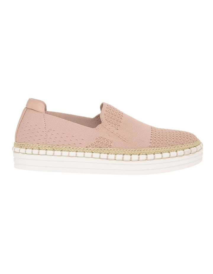 The Queen sneaker features a knitted upper with a sock like fit. Slip on style featuring espadrille stitch and 3cm platform.