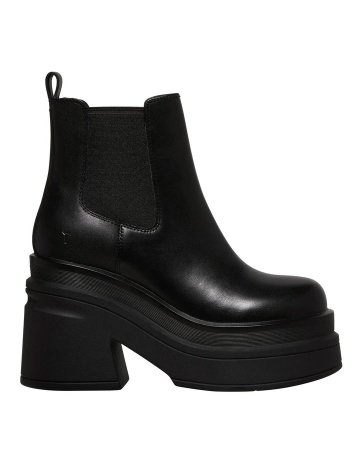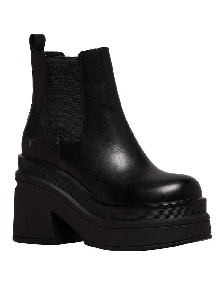 Chunky black leather platform gusset boot